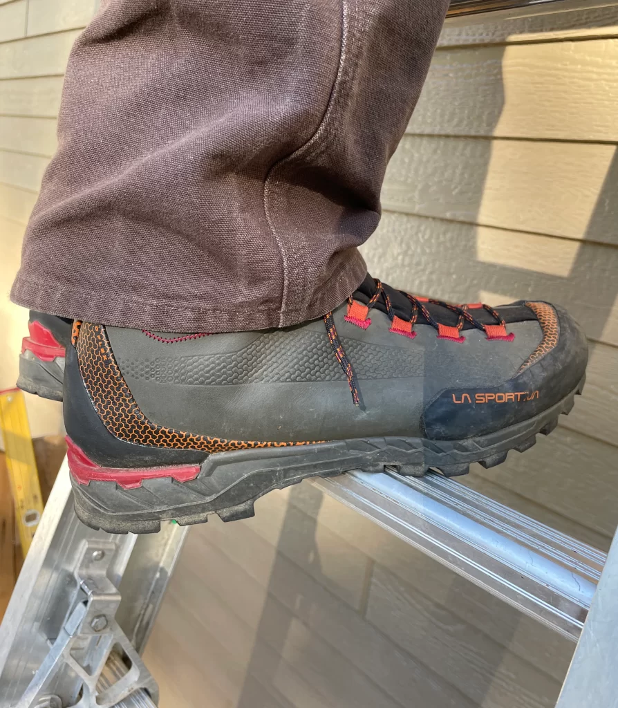 For the past few years, I’ve pulled back from traditional leather work boots and shifted to wearing European-made hiking boots at work. I find them to be just as durable as leather work boots but more comfortable and oftentimes lighter. In particular, the Trango Tech Leather GTX from La Sportiva – made to be a snug, sturdy mountaineering boot – has proved to be a worthy construction work boot.